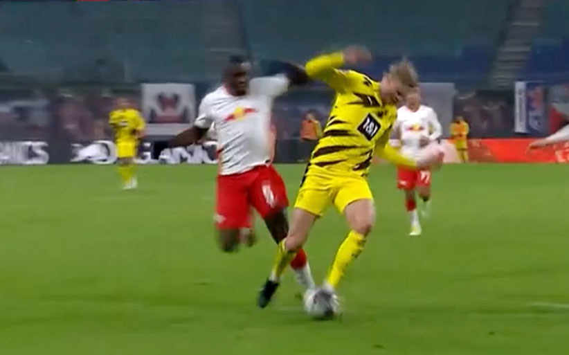 홀란드를 피지컬로 제압하는 우파메카노의 몸싸움.gif