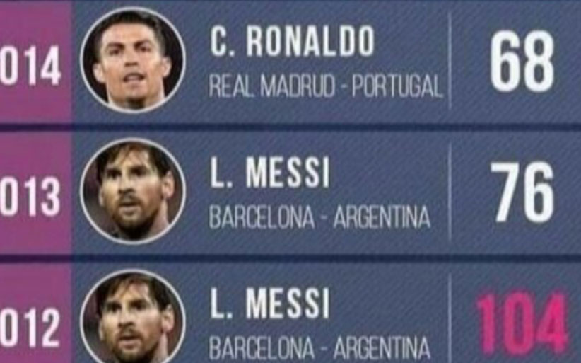 [호날두가 보면 싫어할 기록 짤.jpg] 2001년 이후 최다 공격포인트 올린 선수들. 2009년부터보면 메시 9번이고, 레반수지날두 각 1번씩 (이렇게보니 기록 차이가 크게 나네요)