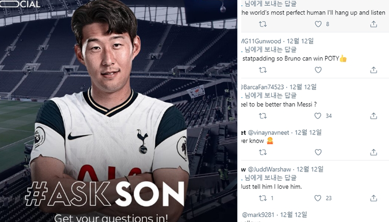 英 스카이스포츠 "손흥민에게 질문하세요" 해외 축구팬 반응