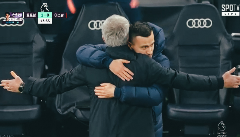 오늘자 무리뉴의 손흥민 원더골 리액션ㅋㅋㅋ.gif
