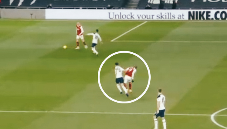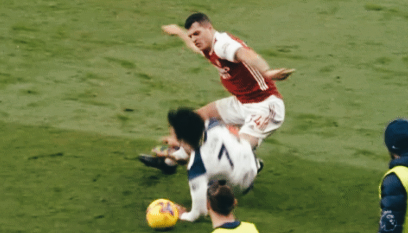 [아스날 자카에게 파울당하는 손흥민.gif] 와.. 뒤에서 그냥 밀어버리네.. 그리고 쿨하게 갈길 가는.. 출처: 뉴락싸