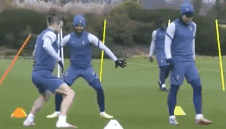 훈련중 손흥민에게 장난치는 가레스 베일ㅋㅋㅋㅋ.gif