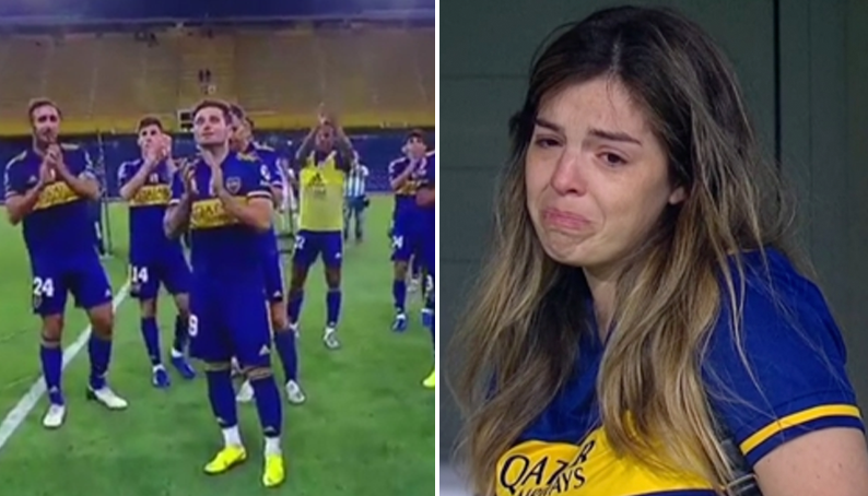 경기장을 찾은 마라도나 딸을 위해 감동 세레머니를 보낸 보카주니어스