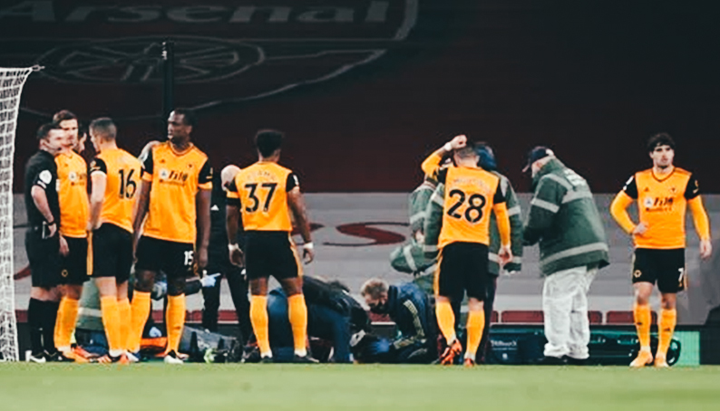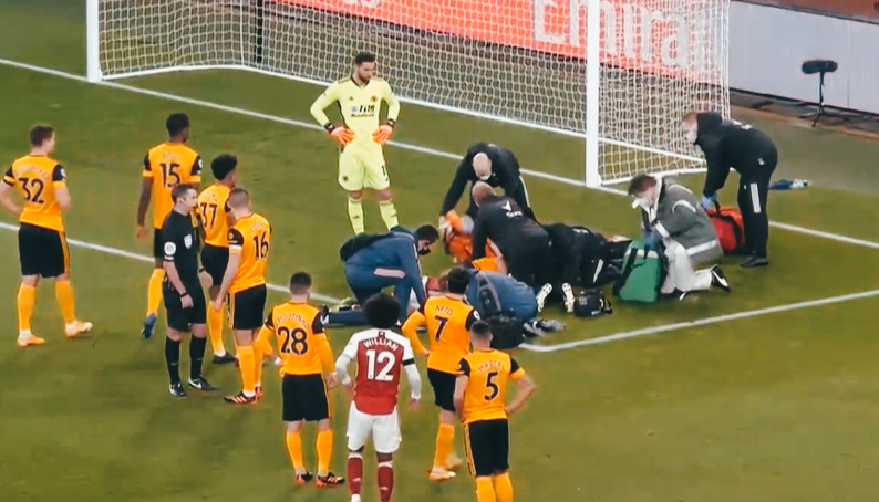 [의식 잃었던 라울 히메네스, 의식 회복 및 치료 효과] (라울 히메네스, 다비드 루이즈 충돌 장면) 스카이스포츠는 라울 히메네즈는 일요일 프리미어리그 경기에서 다비드 루이즈와 머리 충돌 이후 병원에 이송되었고, "이후 의식이 돌아왔으며 치료 효과가 나타나고 있다"고 보도했다. 기사 전문: https://www.express.co.uk/sport/football/1366185/Raul-Jimenez-injury-update-Wolves-David-Luiz-Arsenal-Premier-League