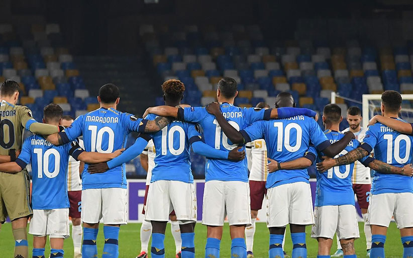 [오늘 유로파, 나폴리 경기 전에 나온 추모 장면] 오늘 유로파 경기에서 모두 마라도나의 유니폼을 입고 추모함.. 정말 아쉬운 건 관중들이 없었다는 것 ㅠㅠ