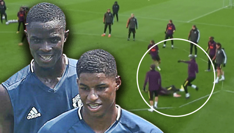 오늘자 훈련중 래시포드에게 살인태클 날리는 에릭 바이.gif