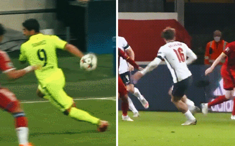 [수아레스 명장면 재연한 '잭 그릴리쉬'의 멋있는 뒤꿈치 터치.gif] 아래는 이런 볼 터치의 레전드 짤 수아레스