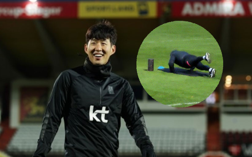 훈련 종료 후 혼자 회복 훈련하는 손흥민.gif
