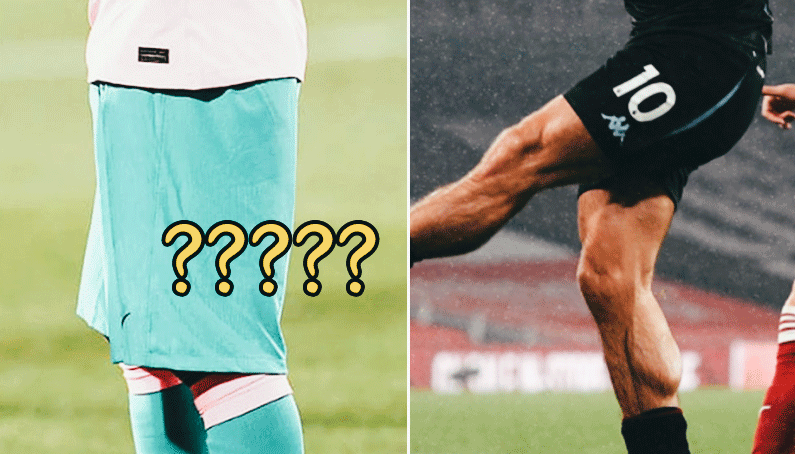 [유니폼 스타일 극vs극] 유독 짧고 타이트한 것 같은 그릴리쉬 바지 스타일 무릎 가까이의 길이에 통 큰 메시 스타일 ???? 메시처럼 무릎을 덮는 산초... 칼버트-르윈?