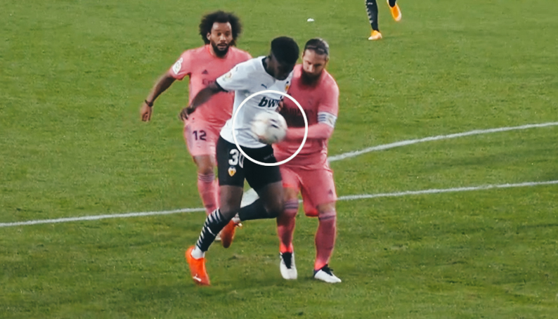 [최근 라모스 핸들 반칙 논란.gif] 최근 발렌시아 vs 레알 마드리드 경기에서 라모스의 핸들 반칙 그런데.. 라모스보다 유누스 무사 손의 먼저 닿았음..ㄷㄷ 출처: 뉴락싸