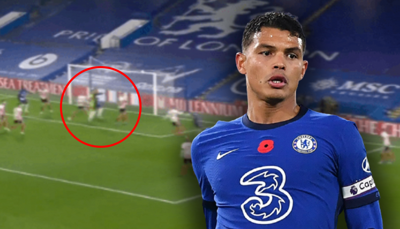 프리미어리그 데뷔골을 기록하는 티아고 실바.gif