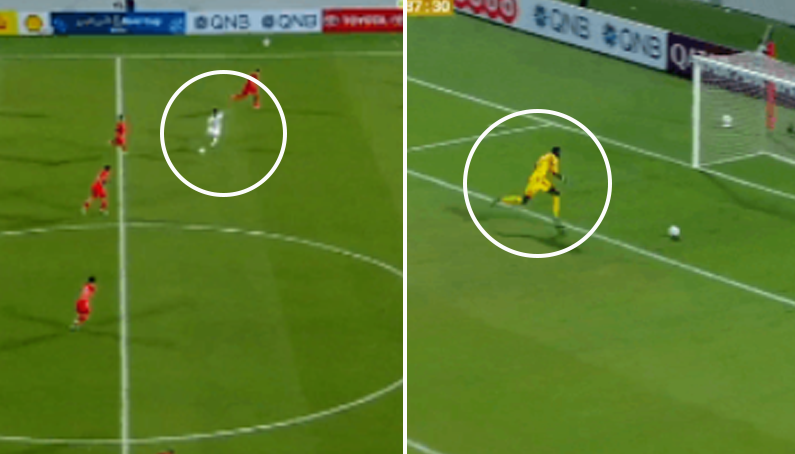 오늘자 아슬아슬하게 들어가는 알사드의 하프라인 슛.gif