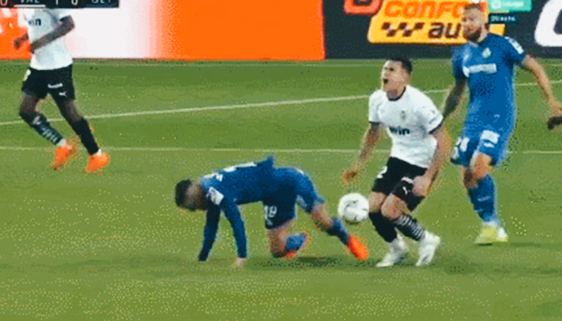 [혼돈의 카오스....라리가 VAR 판정.gif] 원심 : 다이렉트 레드 카드 주심 VAR로 직접 확인 후 레드카드 -> 옐로카드로 변경 노접촉 옐로카드???? 출처 : 뉴락싸_헤타페