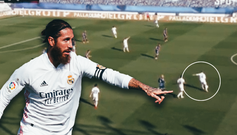 [클라스가 느껴지는 라모스의 전환패스.gif] 공격전개 속도 올릴 수 있도록 페를랑 멘디 앞에 로빙패스 떨구는 라모스