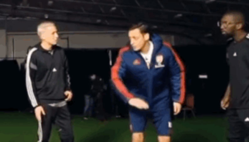 ['찍어 누르는 킥' 알려주는 외질] 공을 찍어 눌러 바운드 시키는 외질의 시그니처 기술. 공을 바운드 시켜 패스하거나 골키퍼를 넘기는 식으로 사용함 외질 시그니쳐 찍어누르기 킥 하는법ㄷㄷㄷㄷ