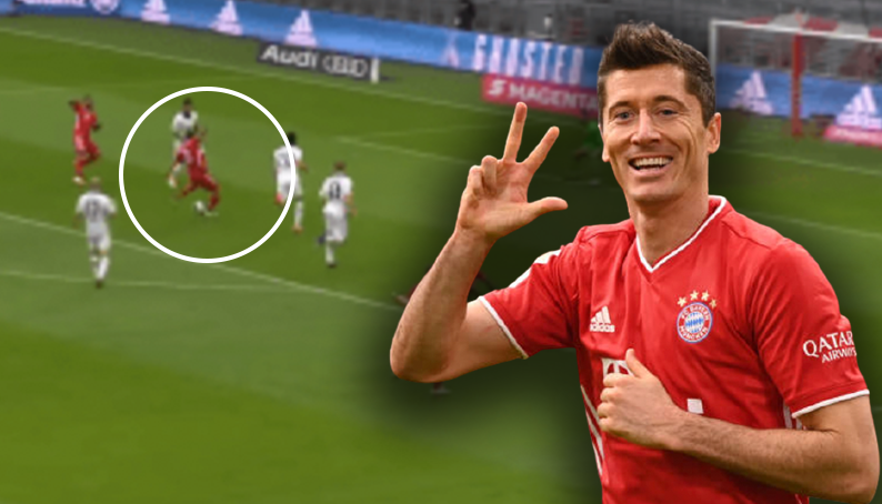 어제자 레반도프스키 '왼발&오른발&헤더' 퍼팩트 해트트릭.gif
