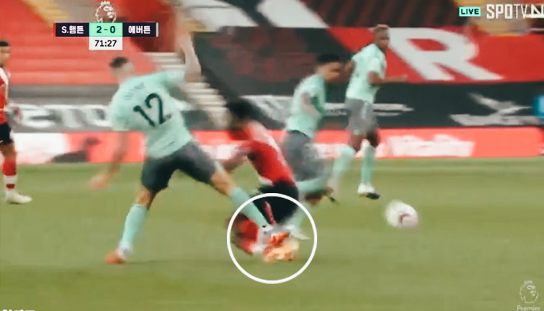 [에버튼 루카 디뉴 다이렉트 퇴장 장면ㄷㄷ.gif] 뒤에서 발을 밟아버렸네..ㄷㄷ 짤 출처: 뉴락싸