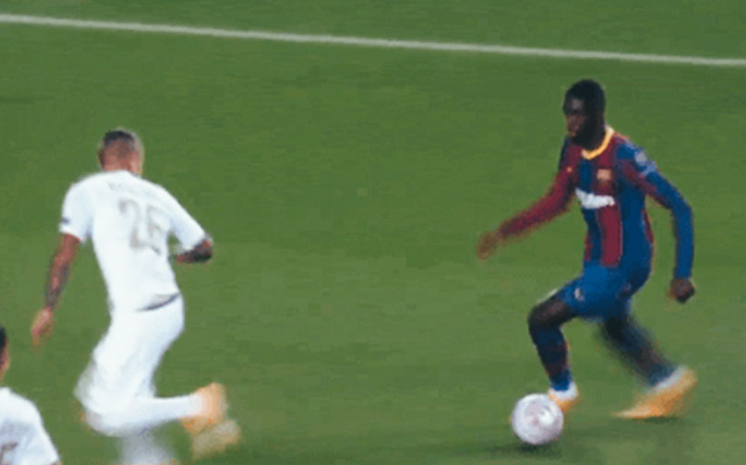 '역시 재능은 재능' 뎀벨레의 미친 가속 드리블.gif