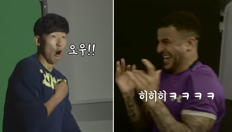 카일 워커의 깜짝몰카에 깜놀하는 손흥민ㅋㅋㅋ.gif
