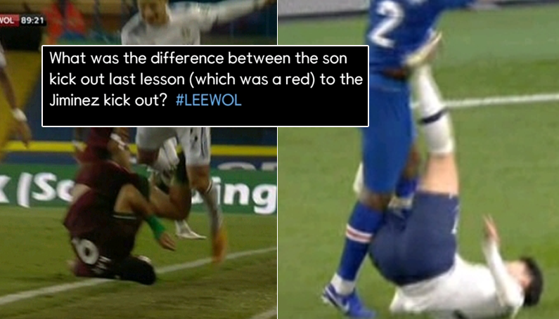 현지에서 논란중인 손흥민의 장면과 라울 히메네스 장면.gif