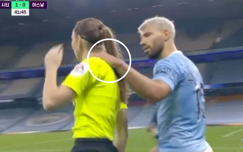 [심판 터치, 현지에서 논란 중인 아구에로의 행동.gif] 여자 심판, 남자 심판 가릴 것 없이 심판 몸에 불필요한 터치 행동은 좋지 않죠.. 출처 : 에펨코리아