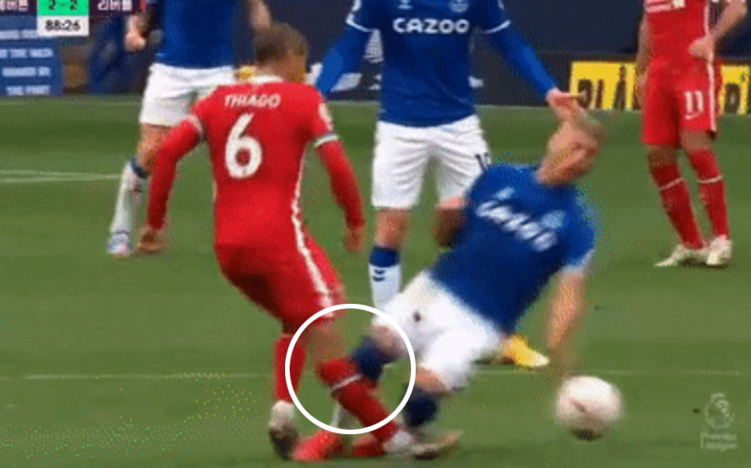 알칸타라의 정강이를 가격하는 히샬리송의 거친 태클.gif