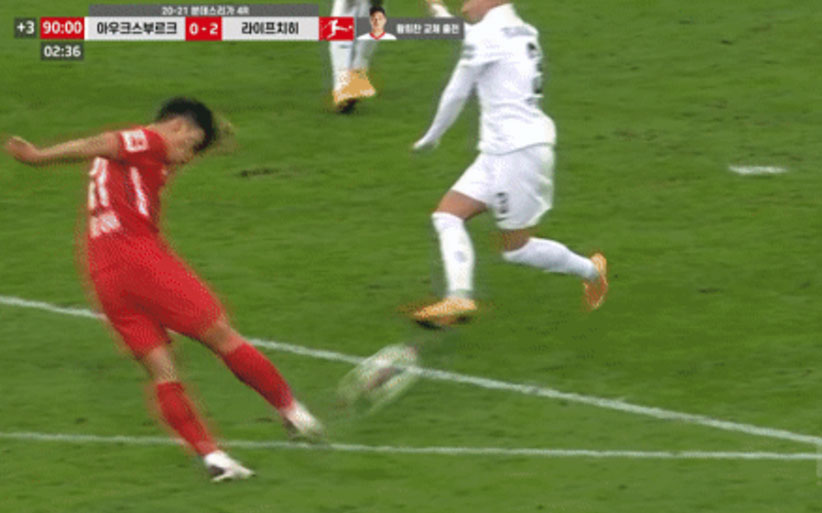 황희찬의 대포알 골대샷.gif