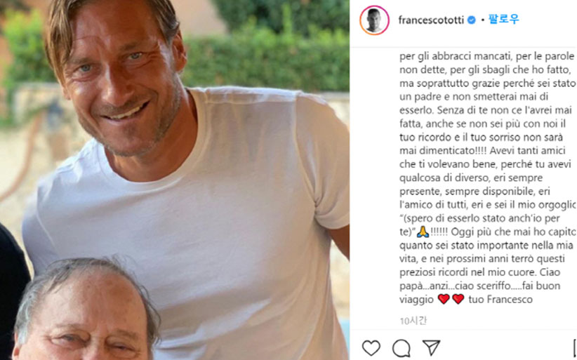 코로나19로 아버지를 잃은 '토티의 가슴절절한 편지'