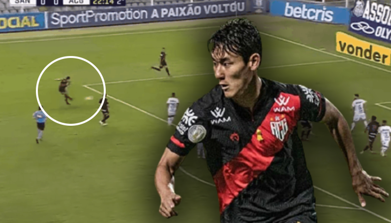 브라질 1부리그 김현솔의 산투스전 결승골.gif