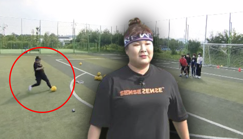 운동뚱 김민경 미친 프리킥 클라쓰.gif