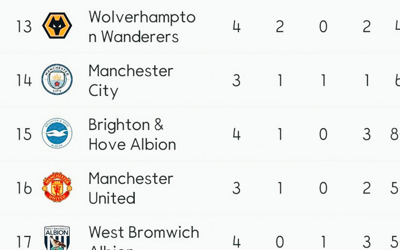 [10월 초, 충격적인 프리미어리그 순위표] 아직 10월이긴 하지만.. 좀 낯설죠?? 출처 : 에펨코리아
