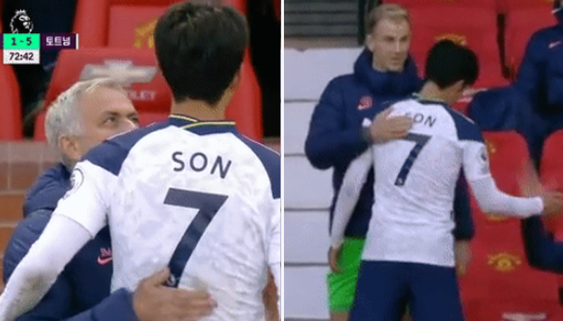 아쉬워하는 손흥민 토닥토닥해주는 무리뉴-조하트.gif