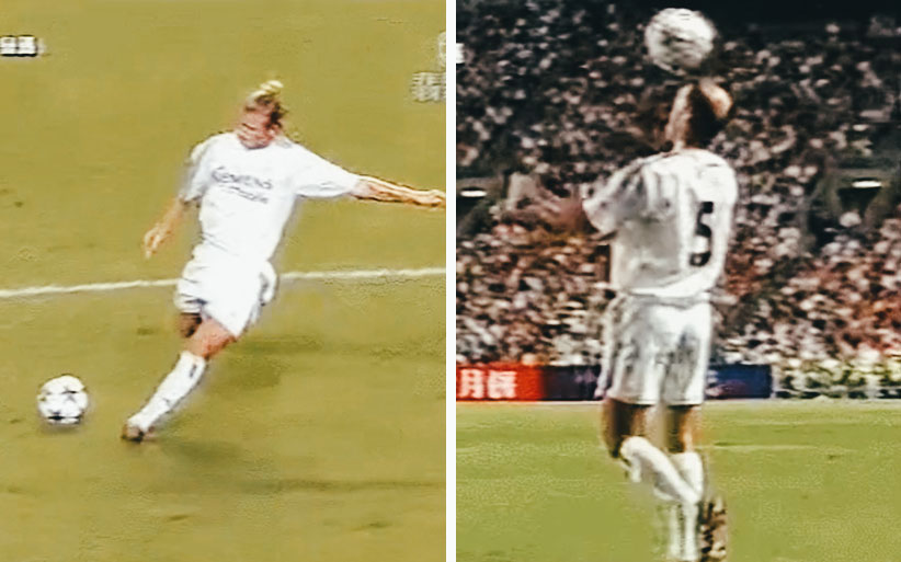 베컴의 롱패스를 무심하게 받아버리는 지단.gif