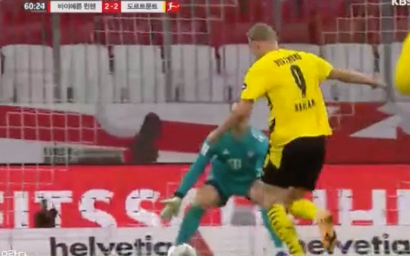 [괴물같은 홀란드의 돌진을 막아내는 노이어.gif] 슈퍼컵 결승 장면. 2:2 동점 상황에서 홀란드가 영웅이 될 수 있었는데 노이어에 막혀 버림ㄷㄷ (결국 뮌헨이 3:2로 우승) 아래는 2:2 동점을 만드는 홀란드의 득점 장면 내 눈 앞에서 홀란드가 아래처럼 달려오면 겁나 무서울 듯ㄷㄷ