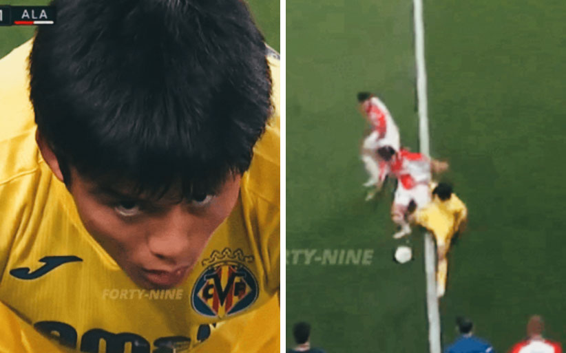 피지컬 부족? 몸싸움에서 고전하는 쿠보의 경기 장면.gif