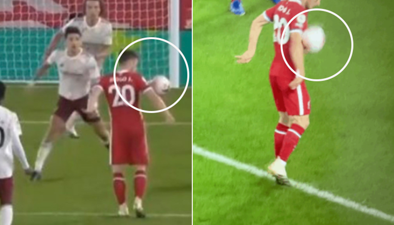 [오늘도 논란이 되고 있는 조타의 골장면.gif] 현재 조타의 골장면도 팔로 슈팅을 할 수 있게끔 공을 건들였기 때문에 핸드볼이다 소매 부분에 맞았기 때문에 핸드볼이 아니다, 소매부분 보다 아래부분에 맞았다 이정도로 논란중인데요. 여러분의 생각은 어떠신가요? 출처 : 뉴락싸_첼레