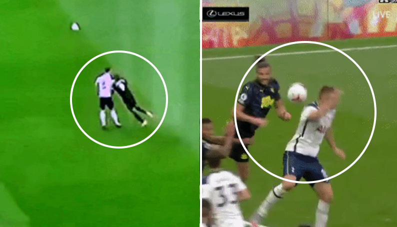 이번 토트넘 경기에서 논란이 되고있는 2장면.gif