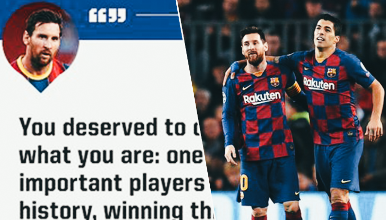 메시의 인스타그램 수아레즈 작별인사 중 보드진 저격발언(+네이마르 댓글)