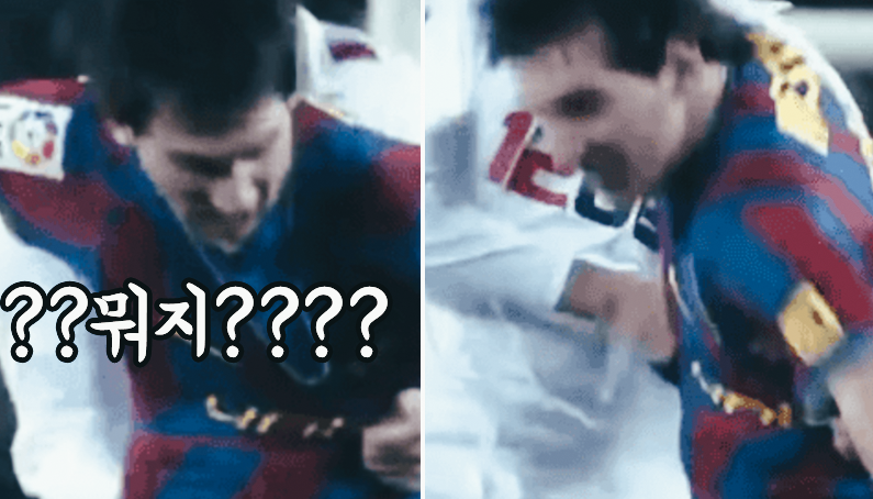 [갑자기 드리블 속도가 죽는 메시.gif] 죽어라 잡아채는 수비수, 기어코 전진하는 메시 이렇게 잡혀도 안넘어지는 메시는.... 출처 : 뉴락싸_라시현