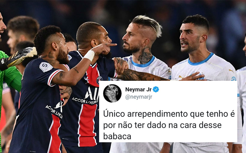 [퇴장 후 SNS에 강력한 멘트를 올린 네이마르] "내가 가장 후회 하는 것은 그 녀석의 얼굴을 때리지 않은 것이다." (네이마르는 인종차별 발언을 듣고 화가 났고 뒤통수에 꿀밤을 때림. 그 후 VAR 판독으로 퇴장)