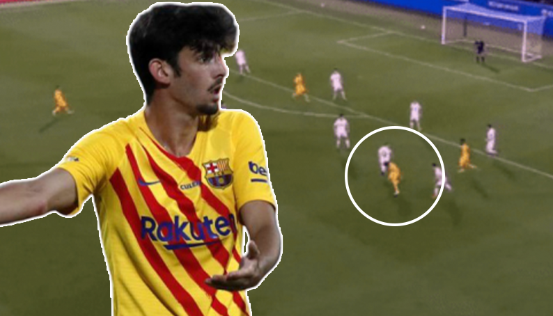 오늘자 바르셀로나의 유망주 트린캉의 미친 플레이.gif