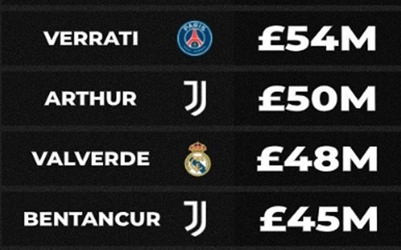 [중앙 미드필더 몸값 TOP 10] 포그바, 캉테ㄷㄷ 발베르데도 잘 나가네요. 혹시 의외인 선수가 있을까요?