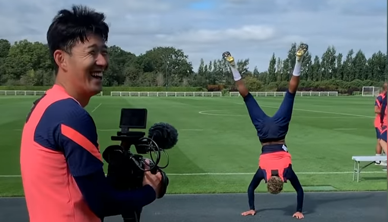 ["손흥민 유튜버 데뷔??", SON TV에 출연해 그랜절하는 알리ㅋㅋㅋㅋㅋ] 팀동료들 촬영하는데 남는 카메라로 지원사격하는 손흥민. 화면 우측상단에도 버젓이 SON TV 워터마크박힘; 얼떨결에 유튜버 데뷔 ㅋㅋㅋㅋㅋ 자길 자꾸부르는 흥민이에게 엽기표정으로 화답해주는 착한 빡모우라. 브라질리언답게 머리에도 브라질리언왁싱을 함. 촬영끝나고 흥민이에게 걸어오다 갑자기 그랜절로 변신하는 알리 빠밤 흥민: oh look at his bum!!! 출처 : 에펨코리아_아리베데르찌