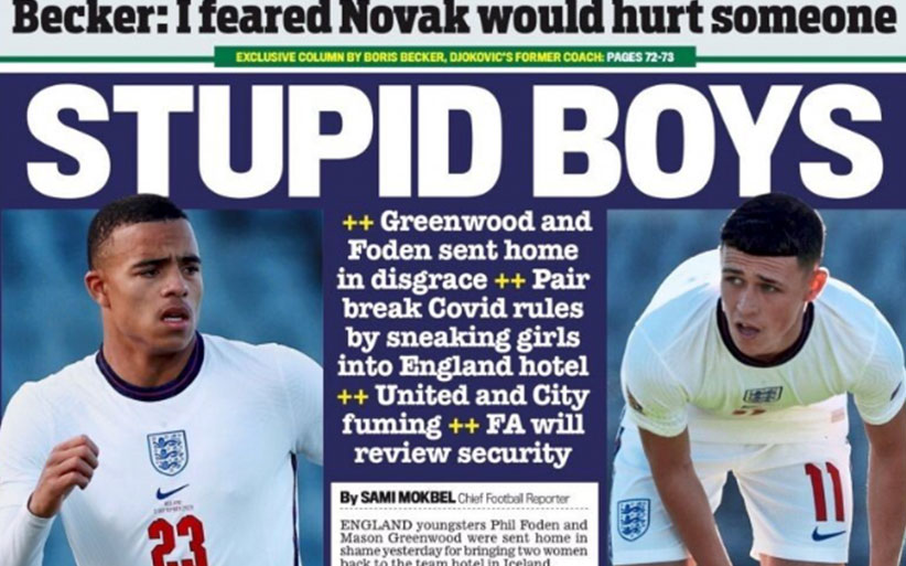 [영국 신문 헤드라인에 뜬 '덤 앤 더머'] “바보같은 놈들” "덤 앤 더머" “바보들” “바보같은 놈들” 잉글랜드 팀 호텔에 여자들을 부른 걸로 비난받고 있는 '포덴과 그린우드'. 영국 신문에서는 Stupid Boys, Idiots, Dumb and Dumber라고 조롱 출처 : 에펨코리아