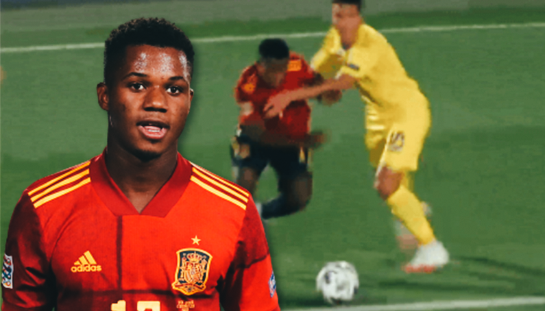 [오늘자 우크라이나 휩쓰는 안수파티.gif] PK획득 돌파+슈팅 바이시클킥 스페인 대표팀 최연소 데뷔골(17세 311일) 페란 득점 직전 볼키핑 출처 : 뉴락싸_라시현