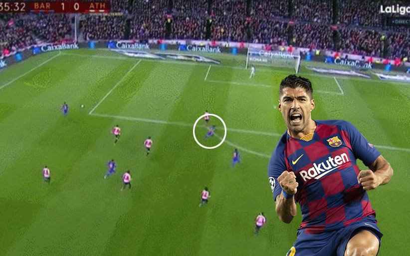 교과서적인 수아레스의 골대 앞 무브먼트.gif