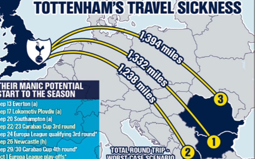 [토트넘의 '9~10월 죽음의 일정' 수준] [9월 일정] 13일 에버튼 원정 17일 불가리아 원정 (사진 1번) 20일 소튼 원정 22일 리그컵 3R(상대 미정) 24일 마케도니아 or 루마니아 원정 (사진 2번 or 3번) 26일 뉴캐슬 홈 29일 리그컵 (3R 승리시) [10월 일정] 1일 유로파 플레이오프 3일 맨유 원정 최소 18일간 8경기, 최대 24일간 9경기 출처 : https://www.thesun.co.uk/sport/12553656/tottenham-season-return-trip-bulgaria-man-utd/ 출처 : 에펨코리아(https://www.fmkorea.com/best/3070275104)