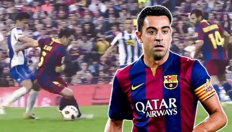 월드클라스 미드필더 사비 에르난데스의 '탈압박 최강 스킬'.gif