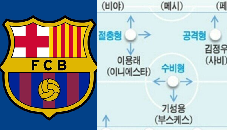 ["전성기 바르셀로나??", 한국 축구 국가대표 레전드 시절] 절충형 미드필더ㄷㄷ 만화 축구 시절 포메이션ㅋㅋㅋㅋ 출처 : 뉴락싸_주작왕