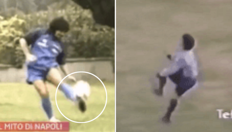 ["미친 클라스..!!", 마라도나의 현역 시절 가벼운 몸풀기.gif] 풀파워 리프팅 깎아차기 뒤꿈치 리프팅 회전 회오리 깎아차기
